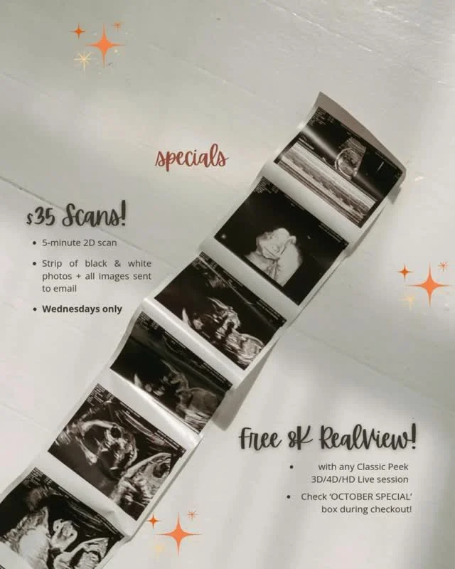 This is the perfect time for stunning 3D/HD imagesβyour babyβs features are beautifully defined, and those adorable chubby cheeks are taking shape! Our Classic Peek package is a client favorite for this reason, and for those wanting extra realism, 8K RealView enhances your images even further with lifelike detail and dimension. Curious about babyβs size? Our Growth Peek can estimate their weight for a fun final glimpse before delivery!